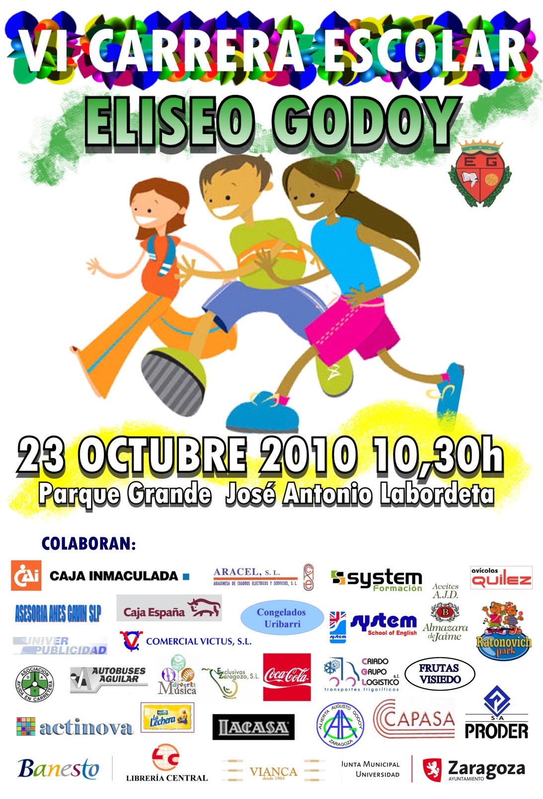 El próximo 23 de octubre de 2010 se celebrará la VI CARRERA ESCOLAR ELISEO GODOY. Se ha publicado un dÃptico con el reglamento, horarios y circuito de la carrera.
